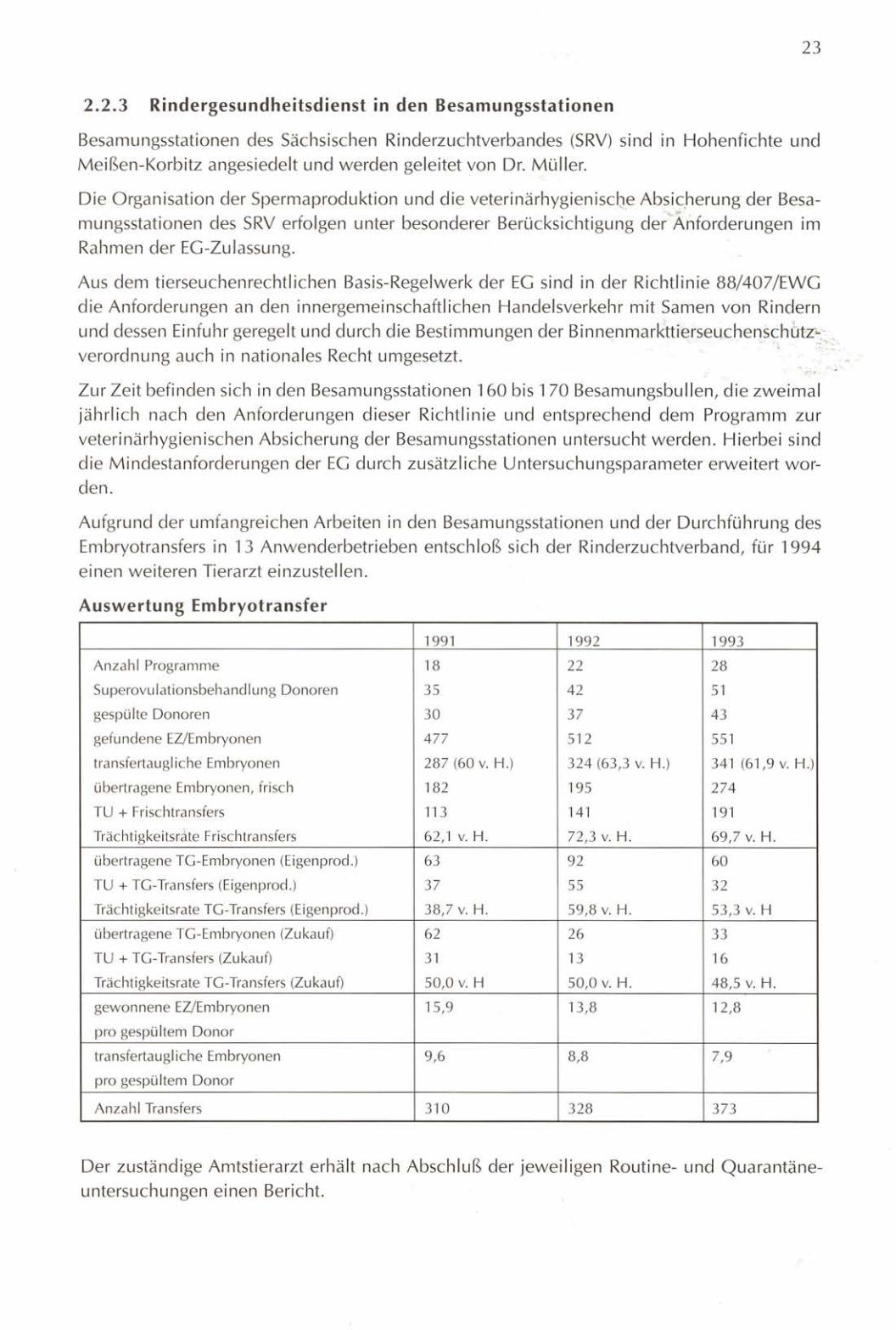 Embryotransfers in 13 Anwenderbetrieben entschloß sich der Rinderzuchtverband,