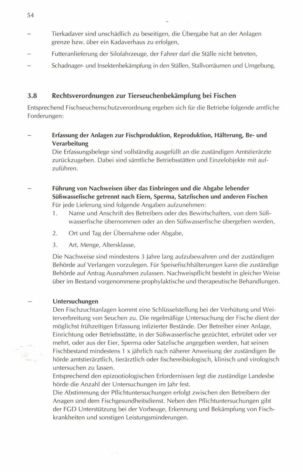 terverbreitung von Seuchen zu. Die regelmäßige Untersuchung der Fische dient der