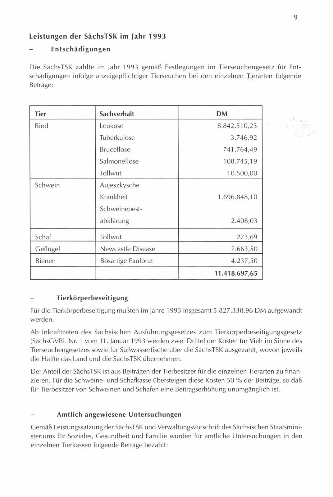 Die SächsTSK zahlte im Jahr 1993 gemäß Festlegungen im Tierseuchengesetz für Ent-